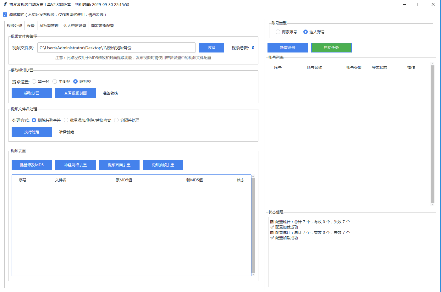 如果你是达人带货赚佣金。那么你可以批量给N个商品发布带货视频!你剩下的时间就去选品,找视频素材就行!视频去重和发布的工作都交给这个软件!