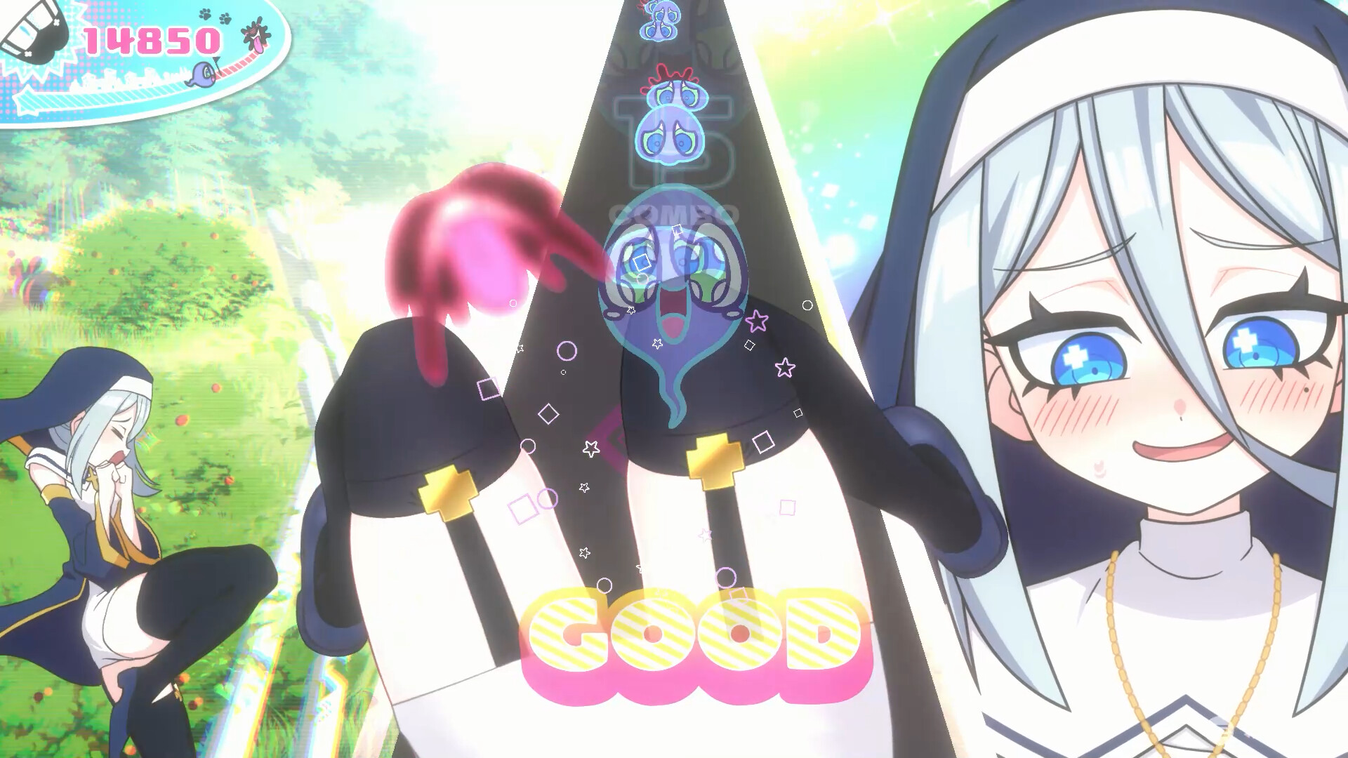 这是一款用大腿夹住并净化灵魂的节奏动作游戏! 玩家需要操作大腿,伴着节奏夹住漂来的灵魂。 用大腿有节奏地夹住灵魂,净化它们吧!! Let's Paradise!!
