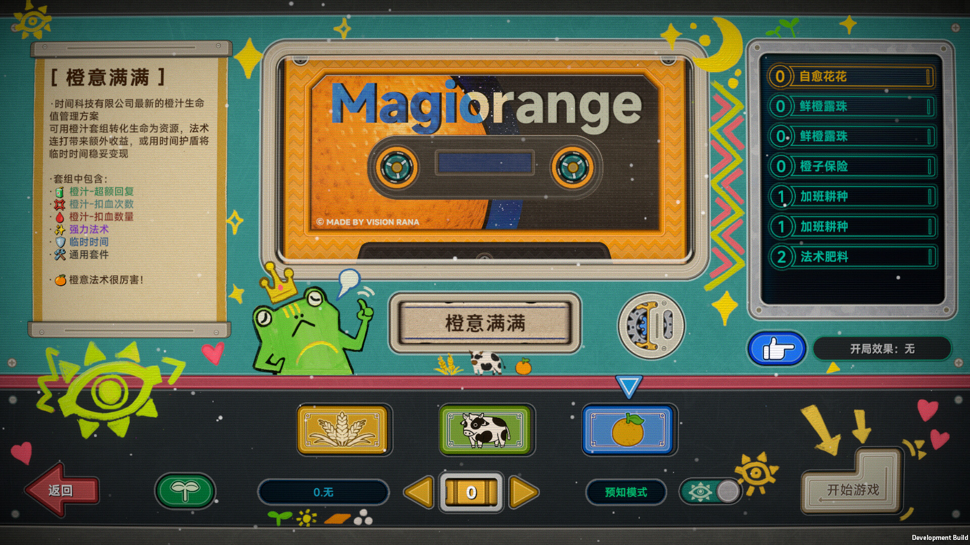 《种呱得呱》是一款肉鸽卡牌游戏。你将扮演农场管理者,完成青蛙公司下达的KPI指标。你将通过紧张刺激的抽卡,规避或利用时间爆炸,获得卡包和宝箱,构建你的卡组,打出卡牌获得金币收益。你还需要有策略性地选择前进的路线,游戏中你会遇到丰富的抉择事件、灾年和大天灾挑战。